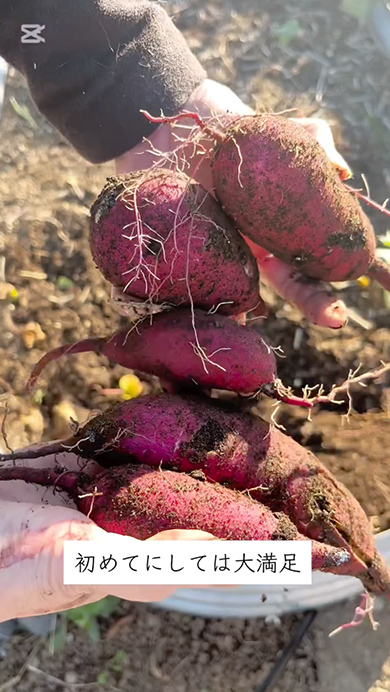 夏ごろに植えた1本のサツマイモ→今になって思い出し、恐る恐る抜いてみると…… 驚きの成果に「えーー」「感動」