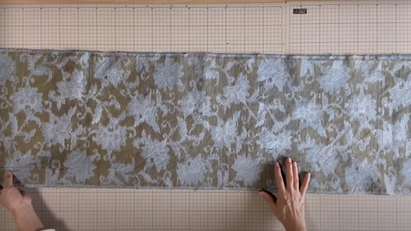 生地の表側に、長さ37センチの線を記していきます。動画では3センチ間隔で17本入れていますが、お好みでアレンジしてもOKとのこと。線が描けたら山折りにし、右側に倒して縫っていきます。そして、生地を引っ張りながら表と裏にアイロンをかけ、ピンタックをさらに右に倒しましょう。