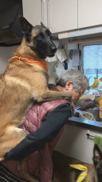 投稿者は北海道北見市でワンコのしつけやホテル、シッターをしている「ドッグトレーニングシリウス」(@rinkociel)さん。SNSでは一緒に暮らすベルジアン・シェパード・ドッグ・マリノア(ベルジアン・マリノア)の「ウルル」ちゃん&「シオン」ちゃんとの日々を発信しています。今回話題になった動画はおばあちゃんにたびたび起こっているという、ある出来事。