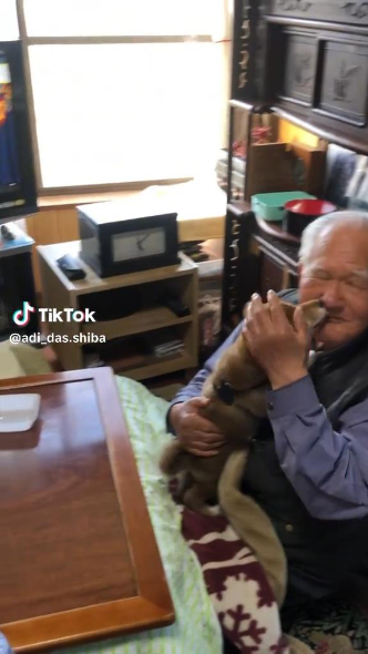 92歳のおじいちゃんと生後3カ月の柴犬の初対面!