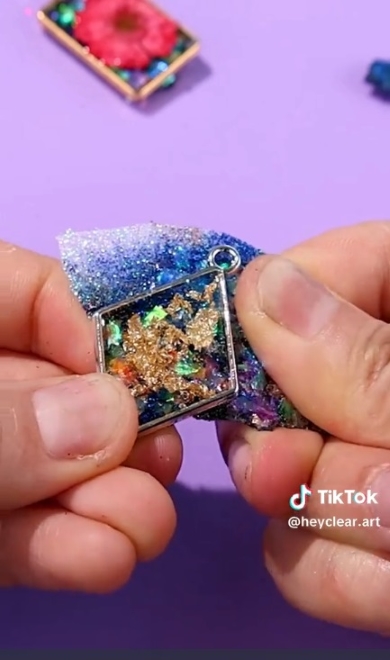 動画を投稿したのは、海外のハンドメイドブランド「HeyClear .art」のTikTokアカウント(@heyclear.art)。エポキシ樹脂やレジンで独創的なアクセサリーを作り出し、完成作品や制作風景を公開しています。