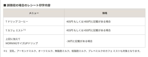 対象となるのは、サービスエリアや空港などの「特定立地価格 A」適用店舗、および東京23区や大阪市内などの一部「特定立地価格 B」適用店舗で、「サイズアップ モーニング」を利用した際、ドリップ コーヒーもしくはカフェ ミストのトール サイズを購入した一部客。レジ登録の誤りにより、商品1杯あたり5円または6円(総額10万2709円)を過剰に請求していたことが判明したといいます。