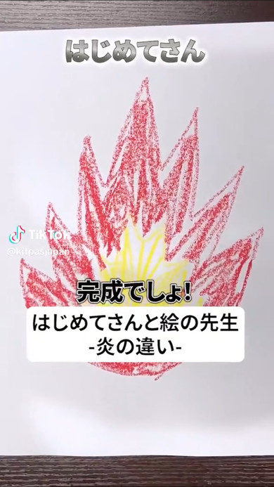 動画を投稿したのは、水拭きで簡単に消せる画材「キットパス」のTikTok公式アカウント(@kitpasjapan)。同アカウントでは、以前にもぶどうやマスカットの描き方を紹介する動画が話題になりました(関連記事12)。今回は「キットパス ミディアム 24色」を使用して、炎の描き方を紹介しています。