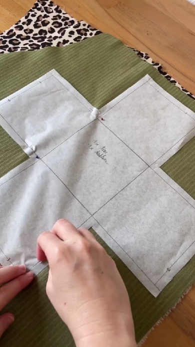 投稿者さんが使うのはグリーンとヒョウ柄の生地(※画像はInstagramアカウント/@blooming_sewingから)