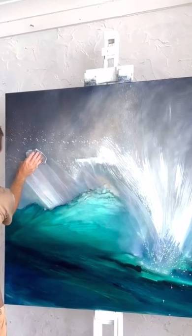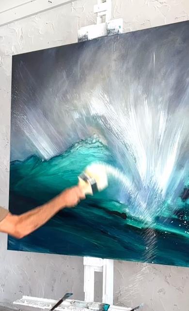リアルな海の風景を、勇気ある驚きの手法で描く様子がInstagramに投稿されました。動画は記事執筆時点で98万回以上再生され、3万6000件以上のいいねが寄せられています