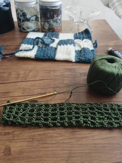 次回はストラップも編む予定