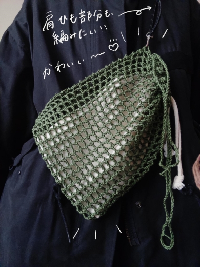 コットン100%の糸で編んだメッシュショルダーバッグ
