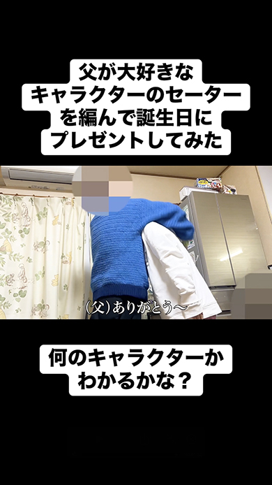 父の好きなキャラクターをモチーフにしたセーターを編んで、還暦祝いにプレゼントしてみたら……。思わずほっこりする父娘の交流がTikTokで話題です。動画は記事執筆時点で25万回以上再生され、多くの反響を呼んでいます。