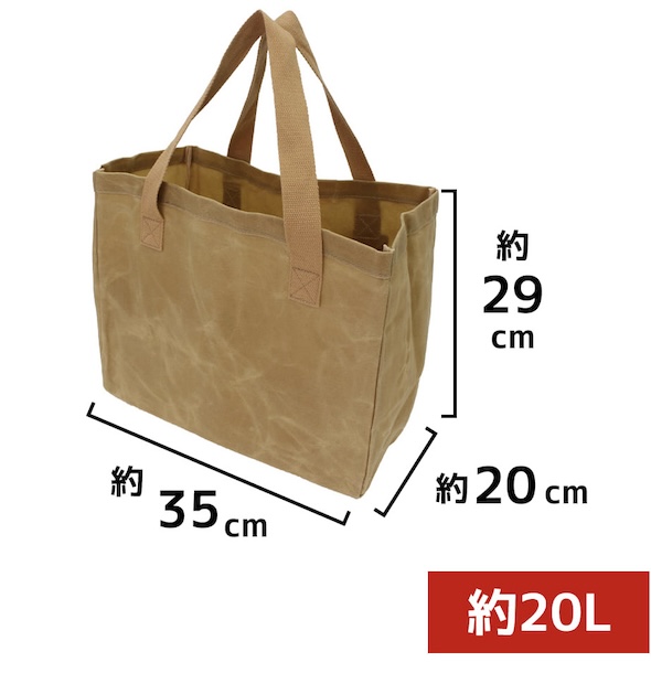 約20リットルの容量があり、幅約35センチ、高さ約29センチ、奥行き約20センチと収納力の高い実用的なサイズ。持ち手が太めで持ち運びやすく、物を入れなくても自立するので出し入れが便利といった特長も備えています。カラーはベージュ、グレー、ブラウン、ネイビーの4色です。