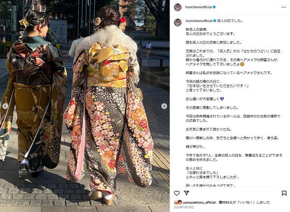 成人式に出席する末娘(右/画像は堀ちえみ公式Instagramから)