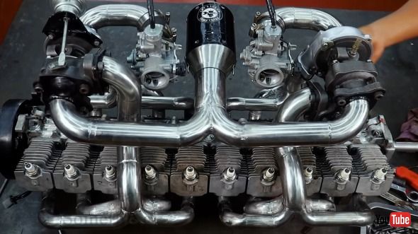 10気筒2ストロークエンジンにデュアルターボを接続!