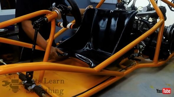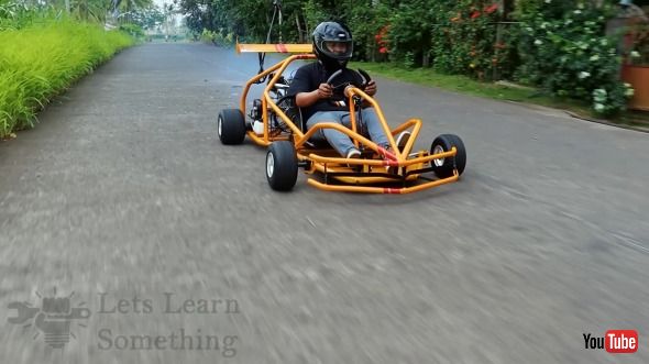 試しに動かしてみても問題なし。その後、パイプなどを加工して、簡素なレーシングカートを作り上げました。