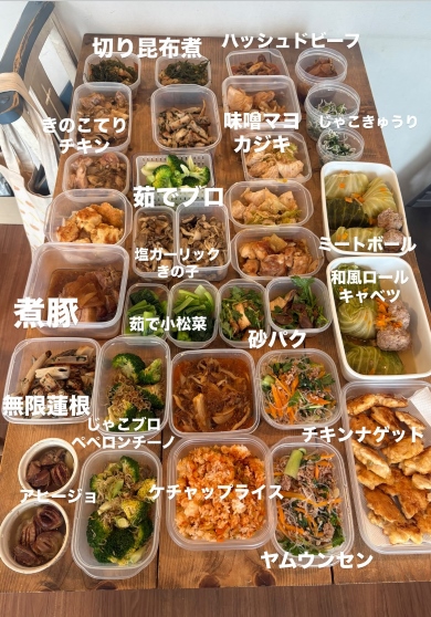 ガッツみゆきさんによると、これらの作り置きはシンプルなものも含めて、2家族分(4人家族と3人家族)の18品で1週間分なのだそうです。ここまでの量を自分で作るとなると、メニューを考えるだけで力尽きそうになる人も多いのではないでしょうか。