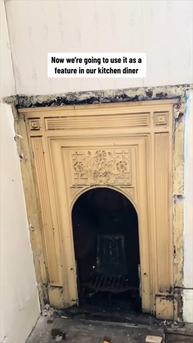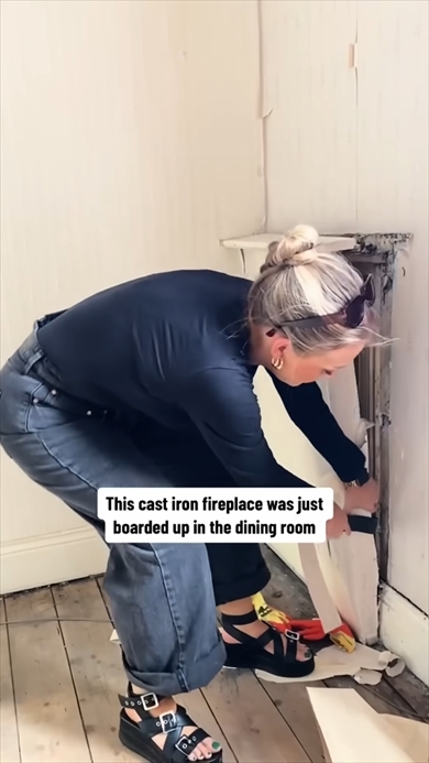 例えば階段の壁内には“ヴィクトリアン調の手すり”が見つかり、ダイニングの壁を剥がすと、ヴィンテージ感あふれる“鋳鉄製の暖炉”が姿を現します。