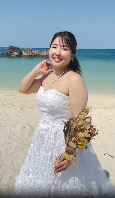 投稿者は、プラスサイズのファッションモデルとして活動する吉野なお(@cheese_in_Nao)さん。2025年3月、なおさんは、2023年に結婚した夫とのブライダルフォトを沖縄で撮影することになりました。なおさんの身長は160センチで、体重は70キロ。ブライダルフォトのスタジオはたくさんありましたが、大きいサイズのドレスがあるところは数が限られており“不便さ”を感じたそうです。