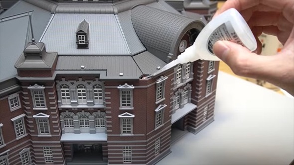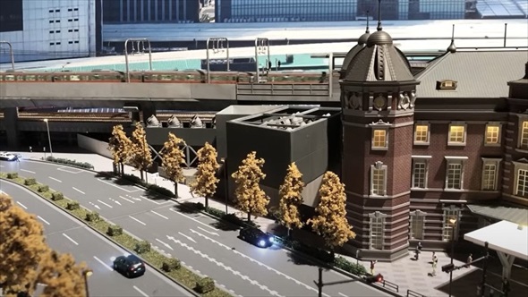 今回の作品は東京・丸の内の風景。テレビなどで見ることも多い、れんが造りの駅舎をNゲージで再現しています。