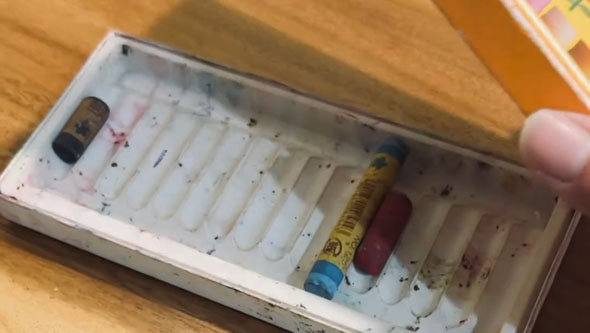 新学期前日「クレヨン補充しなきゃ!」→慌てて蓋を開けると…… 想像以上の“絶望”に「うちは色鉛筆がこれw」と共感集まる