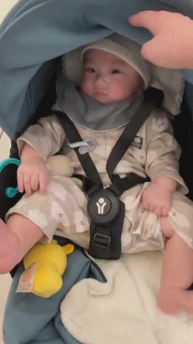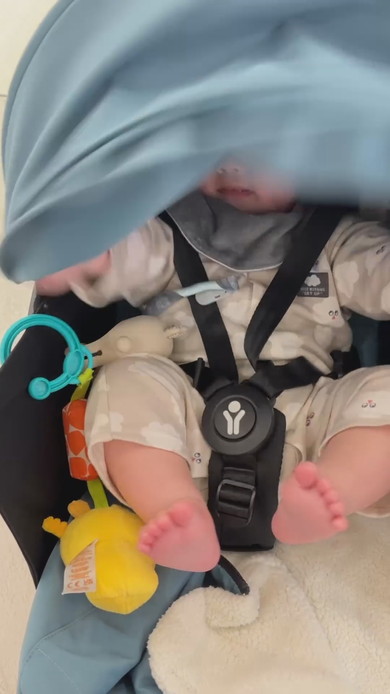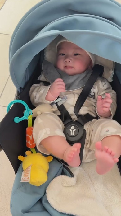 ベビーカーに乗った6カ月赤ちゃん→ママがそっとのぞき込むと…… 「あらっ!」まさかの姿に「笑っちゃいました」