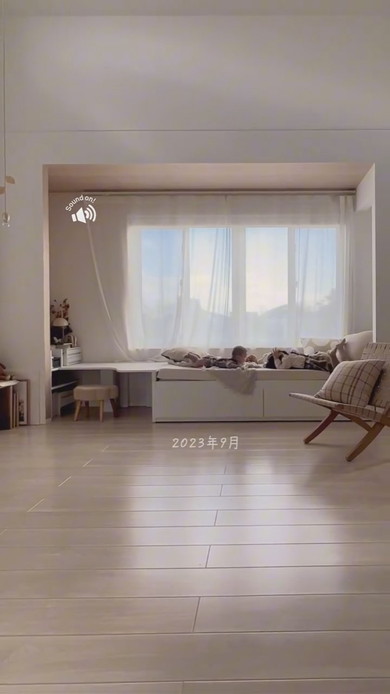 カメラが追い続けたのは、やわらかな日差しが注ぐ窓際のソファベッドですくすく成長する子どもたち。この場所はkimariさんのお気に入りスポットだといいます。