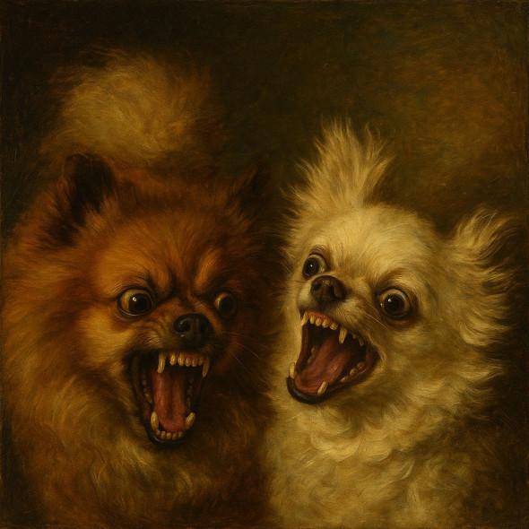 話題になっているのは、Xユーザーの「ぴよりんオブジョイトイ」(@harepiyopiyo)さんが投稿した画像です。写っているのはぴよりんさんが飼っているポメラニアンのポチちゃんと、お隣に住むワンちゃん。ぴよりんさんはそんな2匹の元気で愛らしい写真をChatGPTで「中世ヨーロッパ風」の絵画にすることにしました。