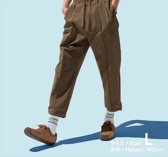 ウエスト・裾がゴム仕様なので、様々なシーンでの対応が可能。カラーは黒とブラウンの2色が用意されており、サイズは男女兼用で、MとLのサイズ展開になっています。