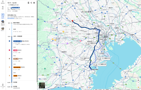 横浜中華街から渋谷までなら30分程度なのに、寝過ごしたせいでちょっとした旅行に(画像はGoogleマップより引用)