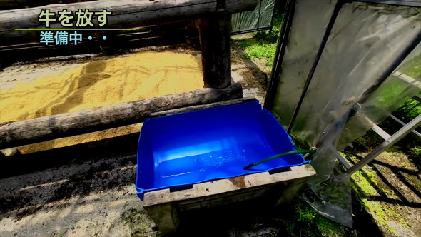 牛を放牧する前に、まずは下準備から。草を刈って、グルッと電気柵を張ります。それから、屋根のあるハウス内に敷料(しきりょう/おがくずやもみがらなどでできたけが防止のマットレスのようなもの)を敷いて寝床を作り、いつでも新鮮な水が飲めるよう水場も作りました。これで準備は完了。牛たちを連れて来ます。