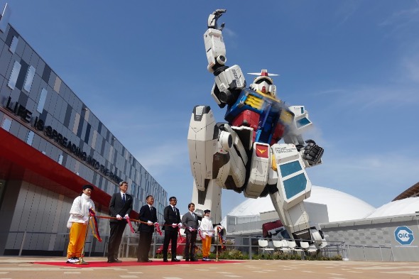 9日に開催された開館式では、このガンダムの前でテープカットも開催。バンダイナムコホールディングス代表取締役社長の浅古有寿氏をはじめ、チーフガンダムオフィサーの榊原博氏らが参加しました。チーフガンダムオフィサーって肩書き、カッコよすぎるな……。
