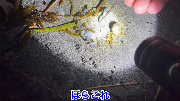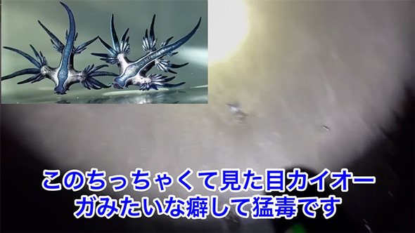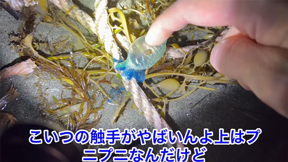 動画であらかわさんが探索したのは神奈川・湘南の夜の海。海辺を見ていくと、「カツオノエボシ」や「カツオノカンムリ」などがたくさん打ちあがっていました。お目当ての“危険生物”は、これら毒を持つクラゲを主食にしているため、発見できる可能性が高く、期待が高まります。