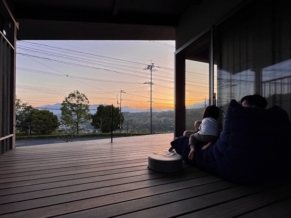 話題になった光景を投稿したのは「えだ」さん(@tbbt_sh)。写真には、たそがれどきのデッキでクッションソファに腰掛けているお父さんと娘さんが写っており、「ベランダは不要と思っていた人間の暮らしを変えた建築士さんはすごいな」という言葉が添えられています。