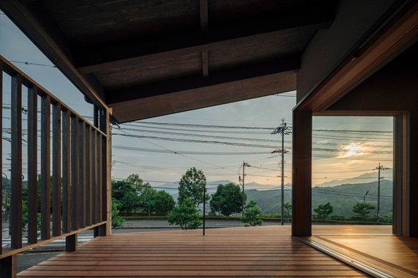 ロケーションを生かしたデッキは隣家の視線を気にすることなく遠くの山々を臨むことができ、自然を近くに感じられる空間となっています。広々としたデッキはリビングからも続いており、屋根がありながら風通しも良く、まるで高級旅館のような心地よいスペースとなっています。