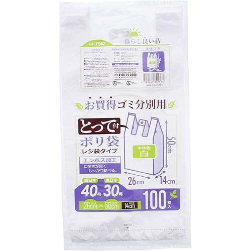 2位:ハウスホールドジャパン とって付 ゴミ分別用ポリ袋 白 100枚 TR40
