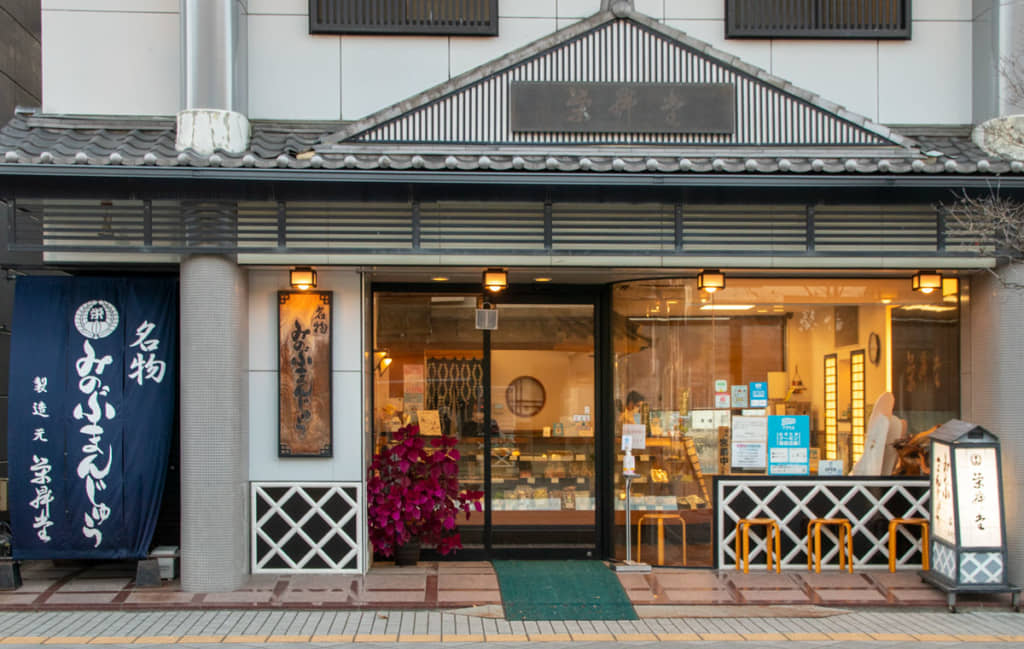 第1位は「栄昇堂」です。JR身延駅改札から、右手正面すぐの場所にあります。控えめな甘さながら、濃厚な味わいを感じられる身延町の銘菓「みのぶまんじゅう」を提供する和菓子店です。人気アニメ「ゆるキャンΔ」にも登場したお店で、アニメファンも多く訪れる聖地としても親しまれています。オンラインでも購入ができるので、現地に行けない人でも名店の味を楽しめるのもうれしいですね。