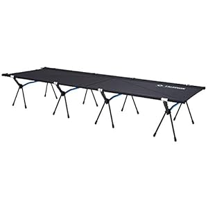 最後に紹介するのはHelinox(ヘリノックス)の「コットマックス コンバーチブル」です。こちらは別売りの「コットレッグ」を購入することで高さを調節できます。サイズは長さ210cm、幅75cm、高さ16cmと大きめ。上で紹介したものより値段は高めですが、テントのポールなどを多く作っている合金加工のリーディングカンパニー・「DAC社」による技術を使っており、2.83kg(スタッフバッグ込みで2.96kg)という重量を実現しています。