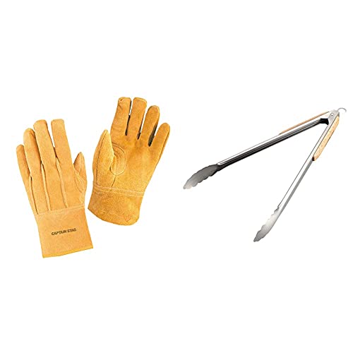 1位:キャプテンスタッグ アウトドア ソフトレザーグローブ+ウッドグリップトング