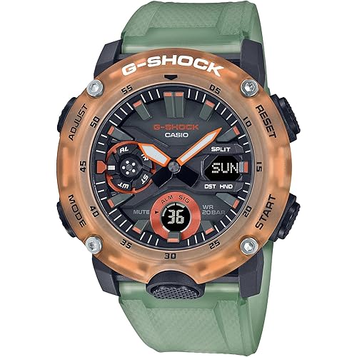 「G-SHOCK GA-2000HC-3AJF」は、「HIDDEN COAST(未知の海岸への探検)」がテーマになった夏にぴったりのカラーモデルです。カーボンコアガード構造、20気圧防水機能などといった性能を備えたタフネスデザインでありながら、マットスケルトン樹脂でカバーされたカーボンケースや、半透明の樹脂バンドで涼しげなデザインになっています。