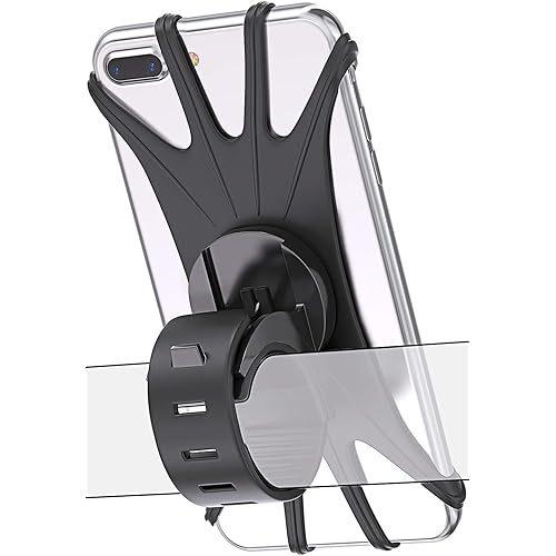 Bovon バイク・自転車用スマホホルダーは、バイク・自転車はもちろん、ベビーカーやショッピングカートにも取り付け可能なベルト型のスマホホルダーです。シリコン製のバンドでスマホを固定するので、4インチから6.7インチまで幅広く対応します。