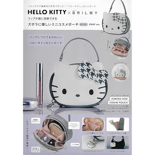 HELLO KITTY × BRILMY リップが縦に収納できる ズボラに優しいミニコスメポーチ BOOK GRAY ver.