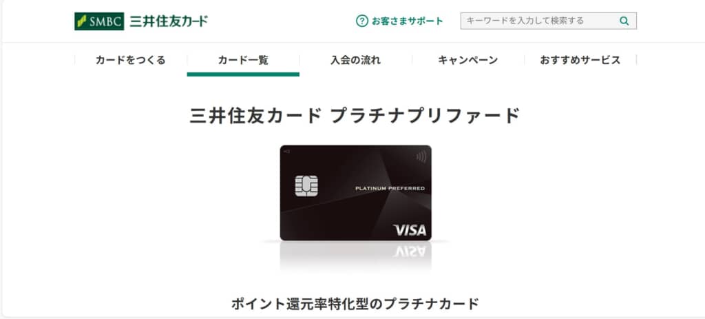 第7位:三井住友カード プラチナプリファード