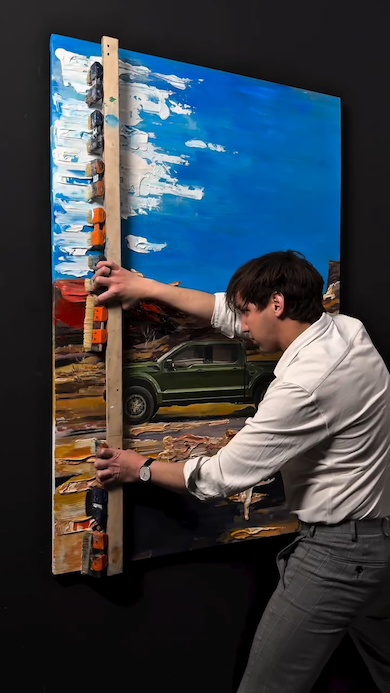 投稿者は、ドイツ在住のアーティスト「Ioann Zelenin」(@zeleninart)さん。今回は“愛車のピックアップトラックを描いてほしい”という依頼に応えた様子を動画で紹介しています。