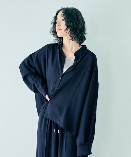 LEPSIM(レプシィム)の「マルチメリット切り替えシャツ」は、定番人気の「マルチメリットシリーズ」のとろみシャツです。人気の落ち感のある素材はそのままに、今季はフロントにトレンド感のある切り替えが入ったことで、より縦ラインをきれいに見せるデザインになっています。