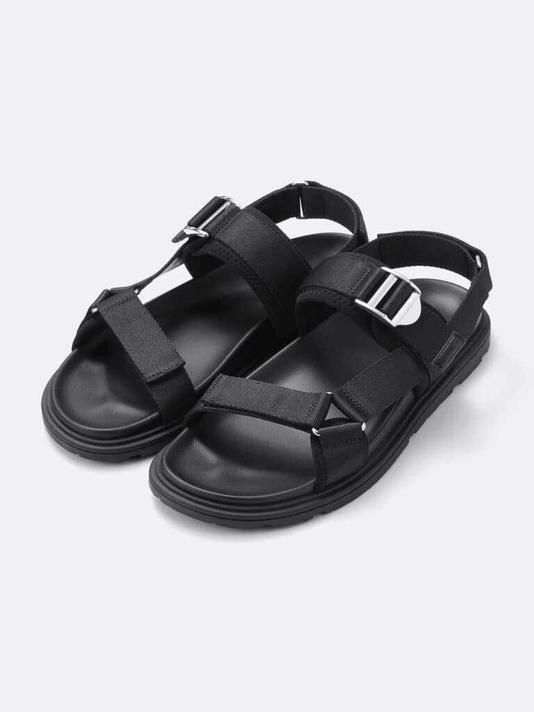 無印良品の「スニーカーサンダル」は、ベルトでホールド感を調節できる使い勝手の良いアイテムです。足にしっかりフィットする設計ながらつま先部分にはゆとりを持たせているため、足幅の締めつけ感が少ないのもうれしいポイント。ソールの一部にはグリップ力のあるゴム素材を採用し、滑りにくさにも配慮しています。