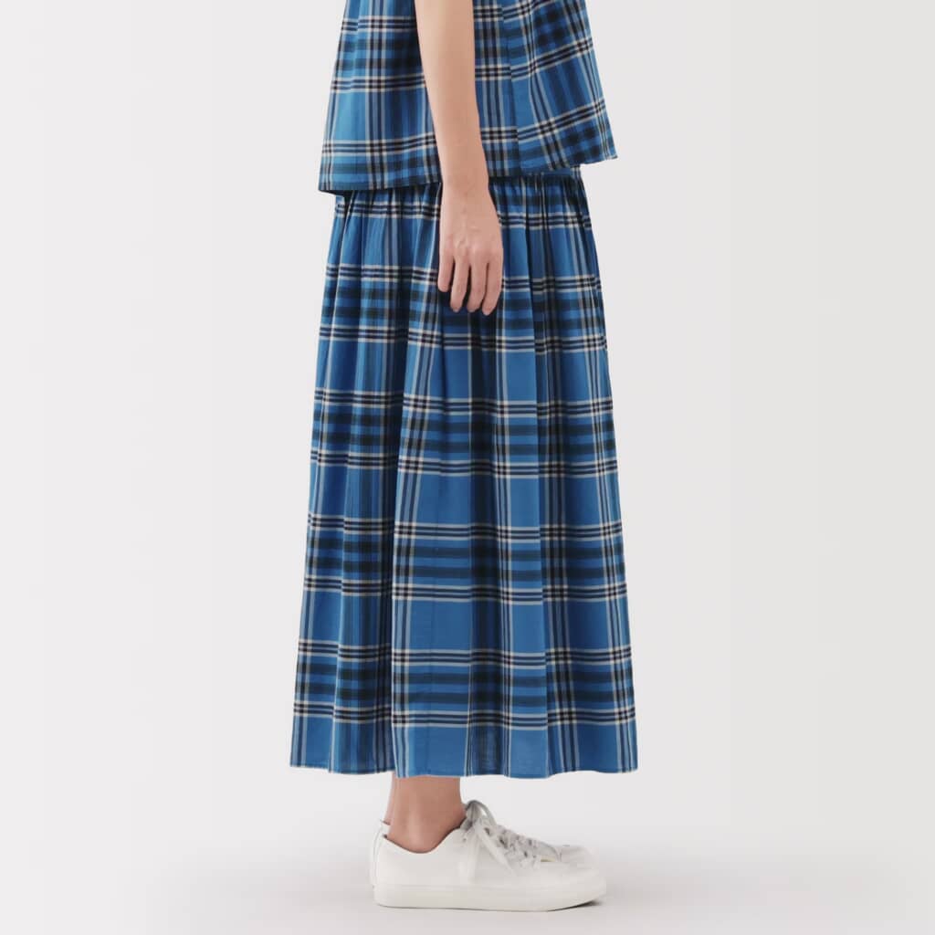 無印良品から販売されている「婦人 マドラスチェックフレアスカート」が、デザイン・カラーやシルエットのよさから人気を集めています。
