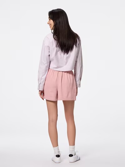 GUの「スウェットショートパンツ」は、リサイクルポリエステルと綿を使用した軽やかなスウェット素材で、快適な着心地が魅力のアイテム。ウエストは総ゴム仕様で外側に調節用のひもが付いており、イージーにはきやすいデザインとなっています。