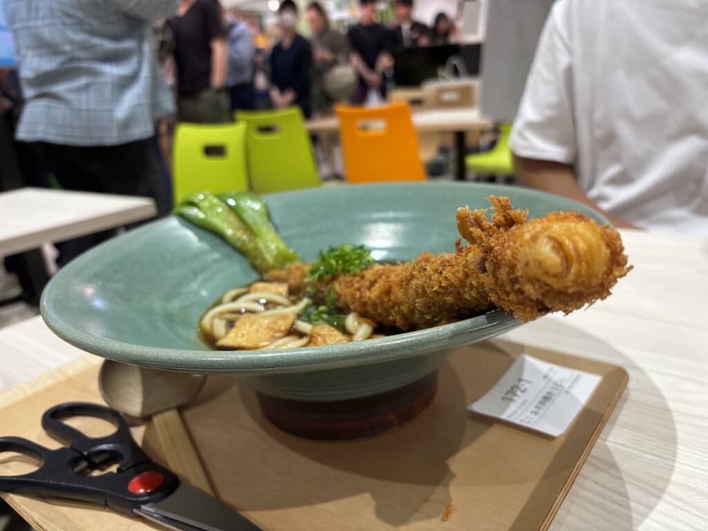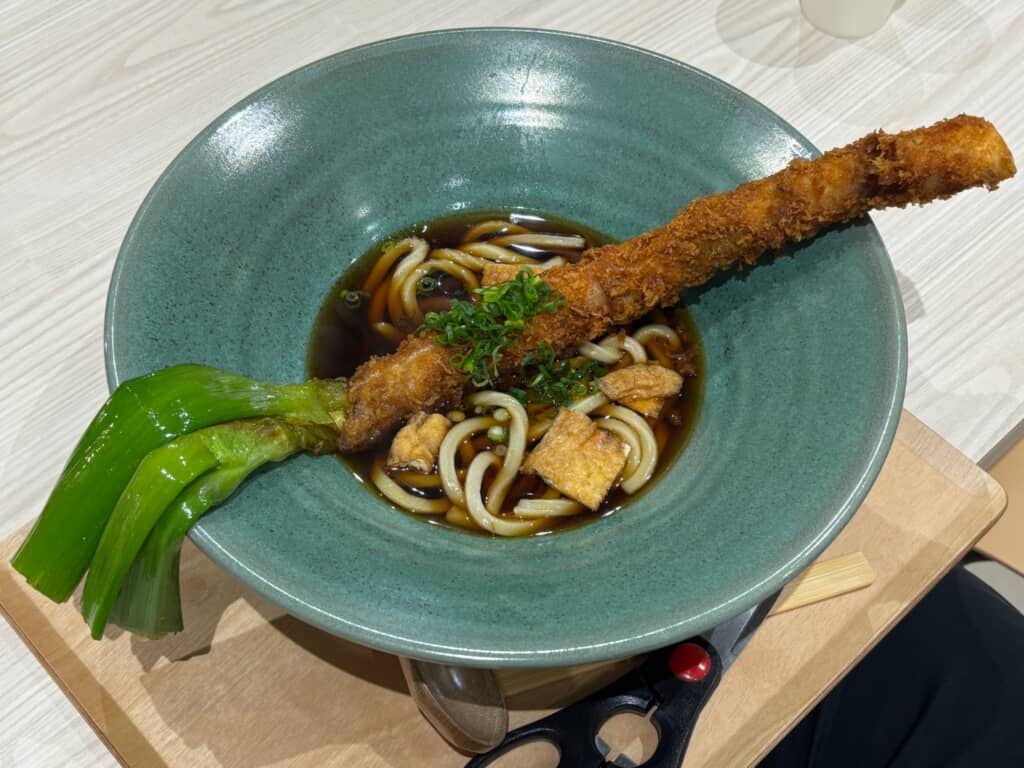 インパクト抜群の「ネギまるごと1本肉巻き うどん」