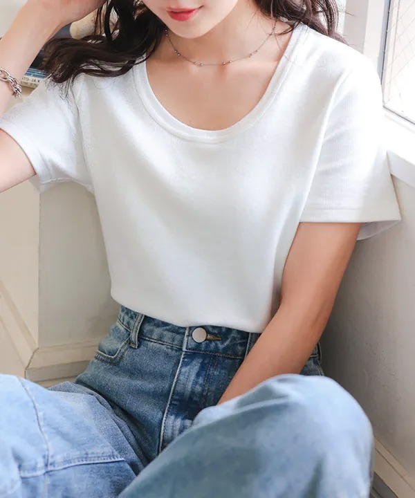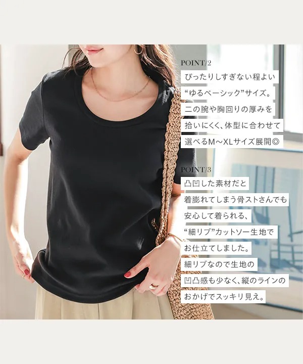 第1位:[M L XL 選べるサイズ] 深Uネック細リブ半袖Tシャツ [C7463]