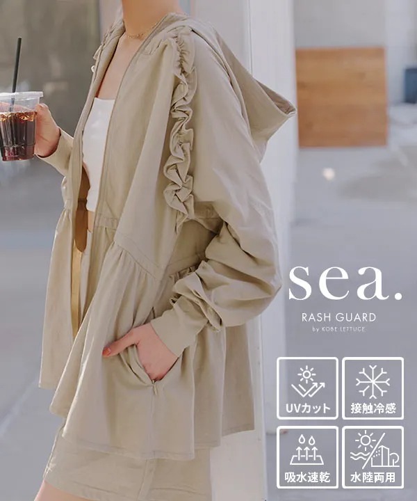 第8位:[ラッシュガード] 指穴付きウエストストリング肩フリルパーカー [S209]