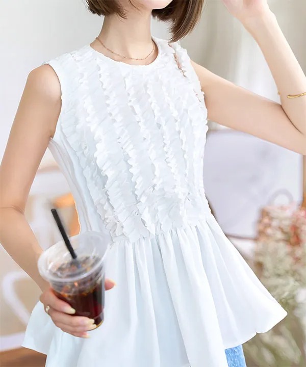 第3位:ギャザーフリルノースリーブペプラムトップス [C7500]