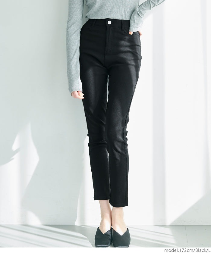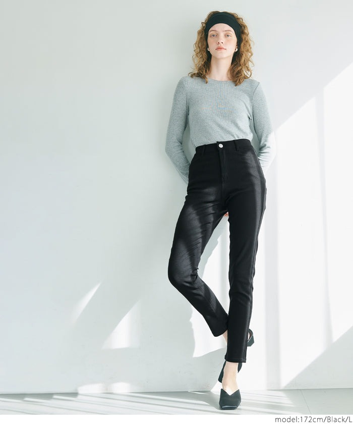 そんなcocaの「ウルトラストレッチ スキニーパンツ レディース」は、美脚効果抜群のスリムなシルエットの、着回し力抜群のパンツです。レーヨンを主成分にナイロン・ポリウレタンを加えた素材は、よく伸びて動きにしっかりフィット。立ったり座ったり、しゃがんだりの動作もスムーズで、スキニーにありがちな窮屈さや脱ぎ履きの大変さとは無縁です。それでいて、脚のラインをきれいに見せてくれる絶妙なフィット感で、着心地とスタイルアップ効果のどちらも妥協しないのがうれしいポイント。