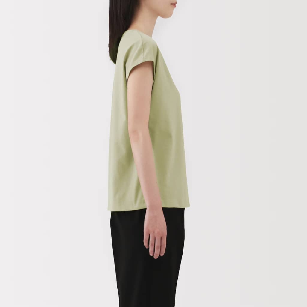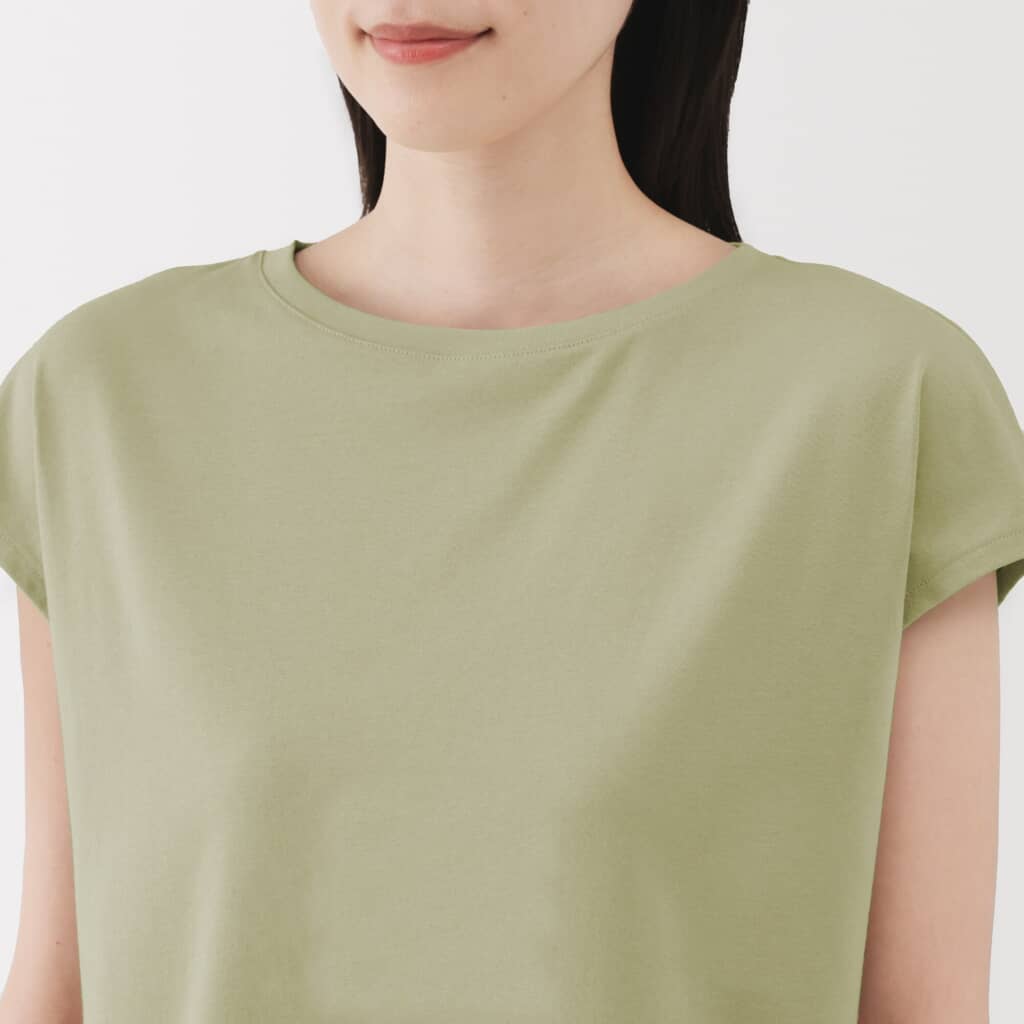 無印良品から販売されている「婦人 天竺編みフレンチスリーブTシャツ」が、着心地がよくて涼しいと人気を集めています。